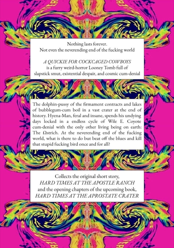 A QUICKIE FOR C*CKCAGED COWBOYS is a furry weird-horror Looney Tomb full of slapstick smut and existential despair.